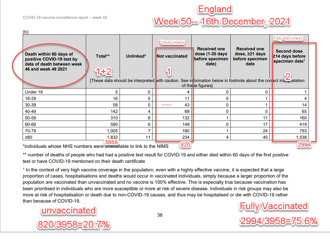 1--- There is enough data to confirm that the covid vaccines are not as effective and safe as the manufacturers, governments, and western media have portrayed them to be. There is evidence to this claim because countries with high vaccination rates are experiencing surges in infection, transmission and death. Vaccine manufacturers have recently stated that their vaccines no longer stop infection and transmission but prevent severe illness and death. However, publicly available data from many western countries do not support that premise. For example, data from England in week 50, as shown in the Table below, clearly show that over 75% of death are among the Fully vaccinated. At the same time, hospitalisation rates continue to rise for the vaccinated. Yet, you will NEVER hear this accurate information mentioned on any western Media !!.