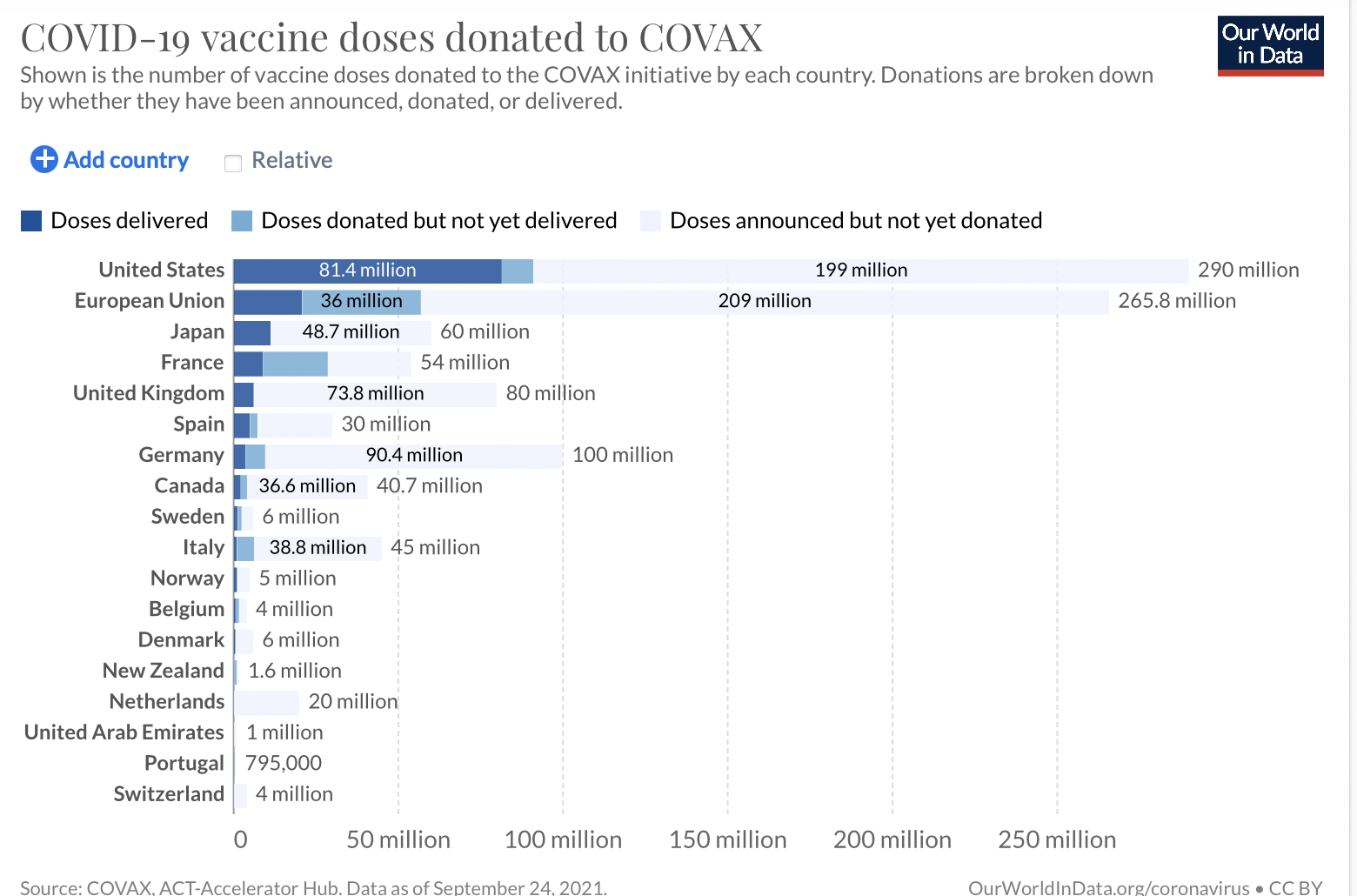 The EU Commission headed by Ursula von der Leyen has committed itself to delivering via GAVI CoVAX 525 million doses. The EU Commission is currently negotiating with Pfizer a delivery in excess of 1.8 billion doses.