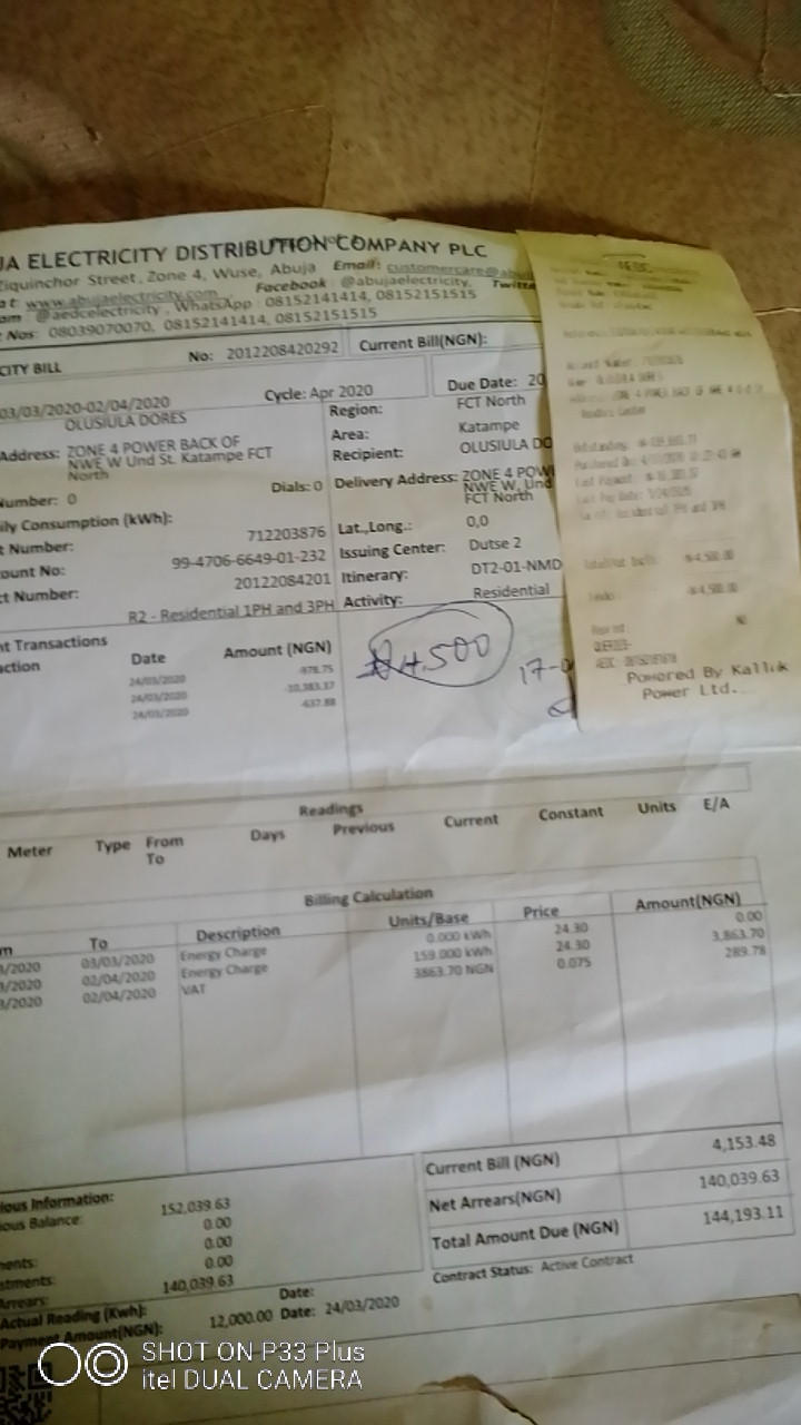 But in Nigeria, my country, the reverse is the case. I read the news and watched it on TV. that citizens will be given 3 months of free electricity as regards the lockdown because of COVID-29. I have been waiting for the time this will be implemented only to receive an electricity bill of four thousand and five hundred naira (#4500) for the month of April 2020, see evidence of the bill, and the payment here