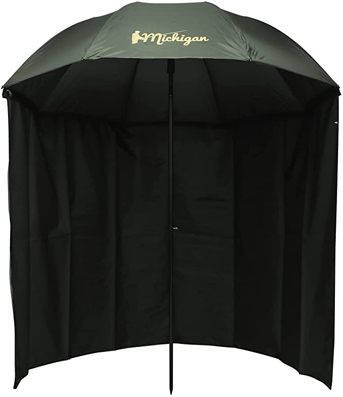 This ingenious umbrella ,Michigan Fishing Umbrella Shelter ,should keep you comfy throughout extended fishing trips. You may fasten it with expanded side panels, man lines, and pegs.The adjustable handle makes it simple to vary the umbrella's height and position, while side windows let you see what's occurring.The coated steel frame is durable, and the umbrella comes with a travel bag.