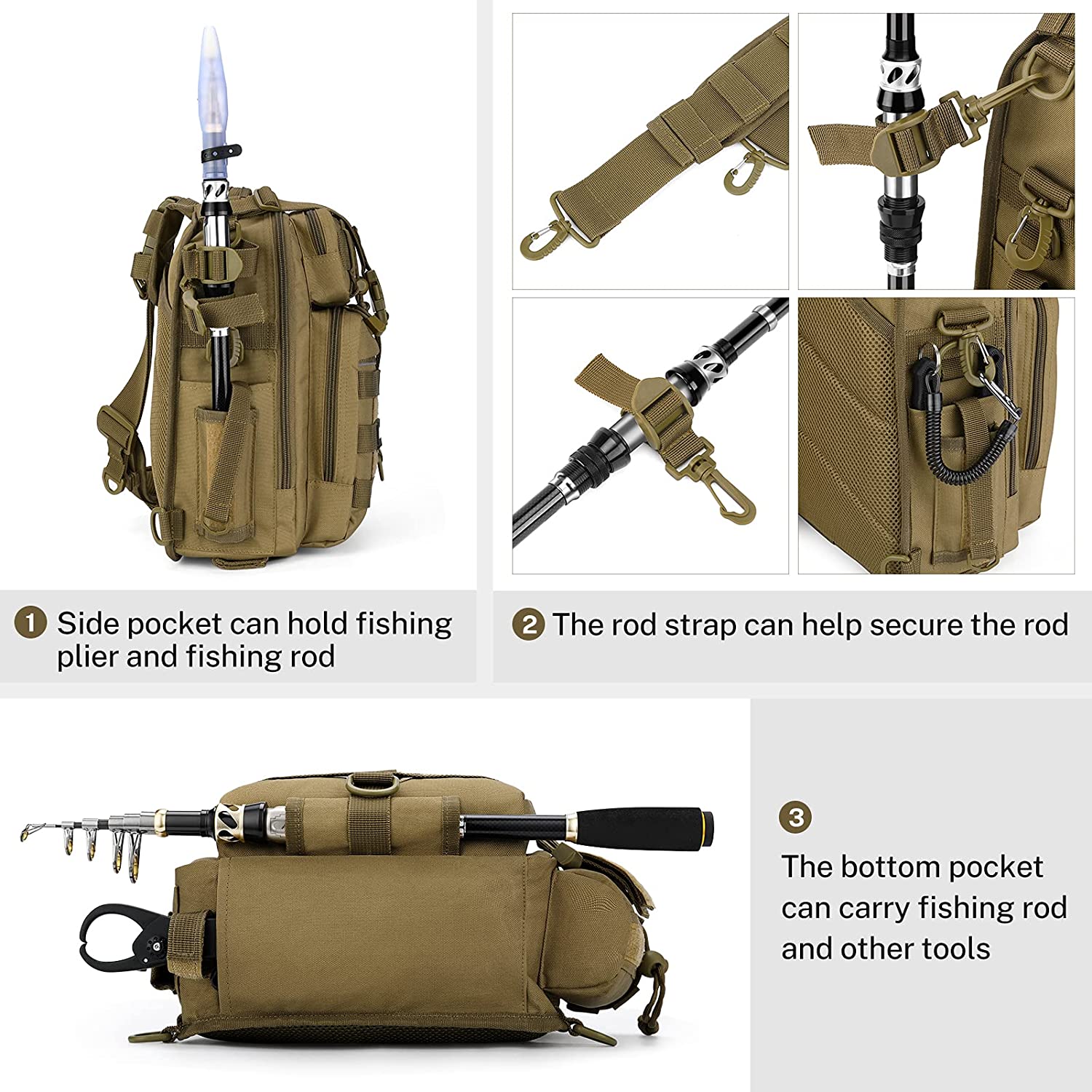 This tackle bag is made of high-density 1000D nylon fabric, which is very sturdy, wear-resistant, and water-resistant. It will last a long time and keep your belongings safe whether you're walking through rugged beach places or on a trip with inclement weather.Scientific carrying system—ergonomic back panel and mesh cushioned shoulder straps are pleasant and breathable, reducing shoulder tension and strain when carrying for extended periods of time.