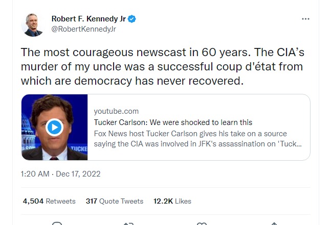 Twitter users, including the nephew of JFK have reacted to Tucker Carlson claims ,